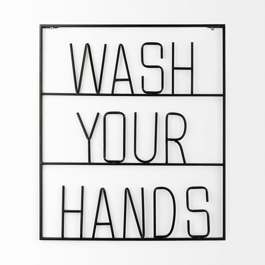Playful Sign Wall Decor Black Metal | Wash Your Hands