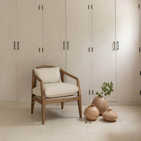 Ronald Dining Chair Cream Fabric | Brown Wood (Armchair)