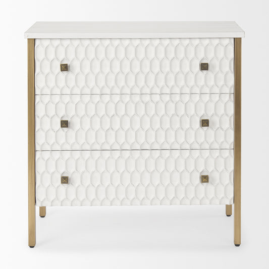 Savannah Gold Accent Cabinet 3 Drawer White | Gold Metal | 3 Drawer
