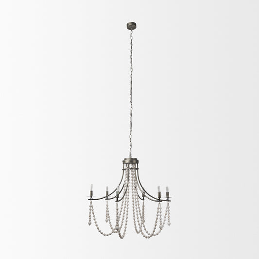 Selma Chandelier White Wood | Silver Metal