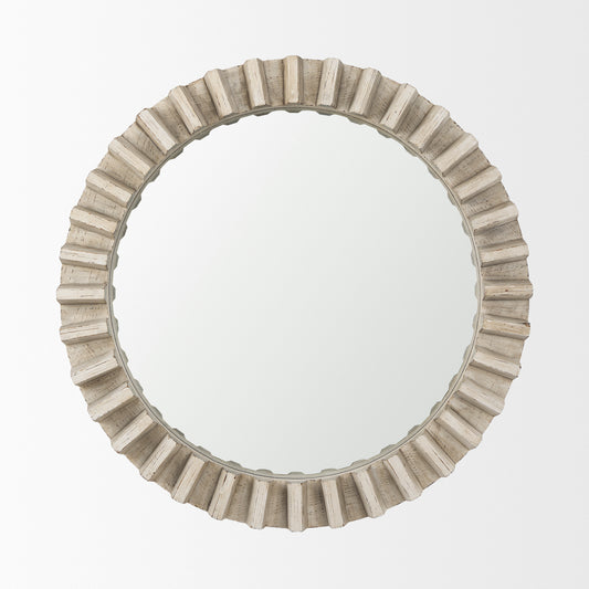 Sprocket Wall Mirror Natural Brown Wood | 35"