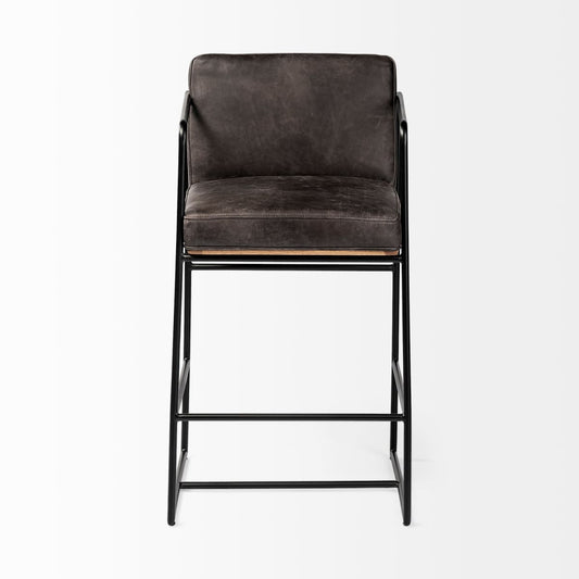 Stamford Leather Seat Bar Counter Stool Black Leather | Black Metal | Bar