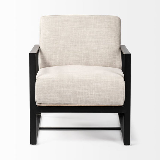 Stamford Upholstered Accent Chair Beige Fabric | Black Metal