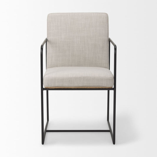 Stamford Upholstered Dining Chair Beige Fabric | Black Metal | Armed
