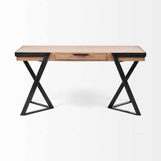 Steinbeck Office Desk Brown Wood | Black Iron