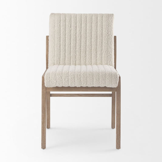 Tahoe Dining Chair Cream Bouclé Fabric | Light Brown Wood | Armless