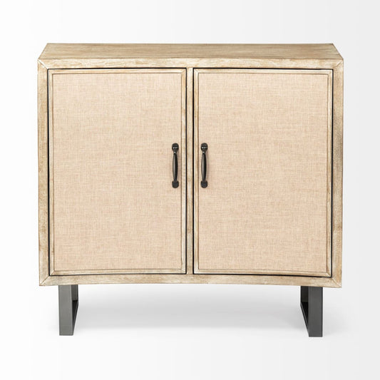 Bellefontaine Accent Cabinet Natural Wood | Cream Fabric