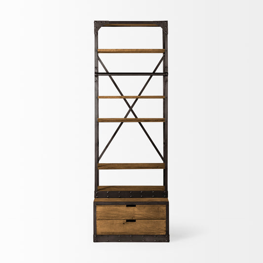 Brodie Shelving Unit Medium Brown Wood | Black Metal | 57L