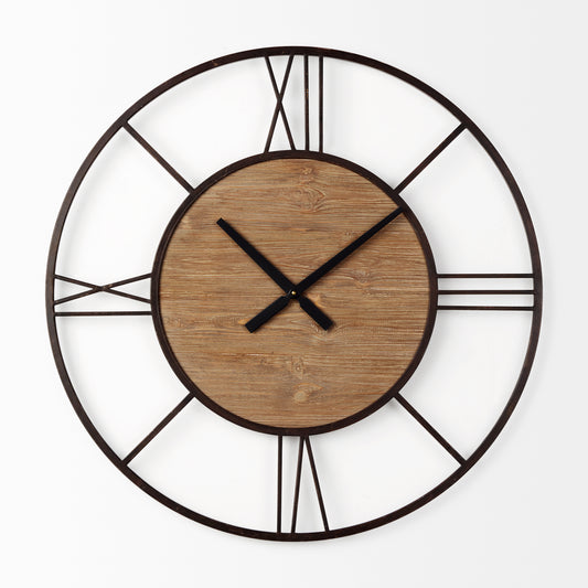 Brielle Wall Clock Black Iron | Brown Wood