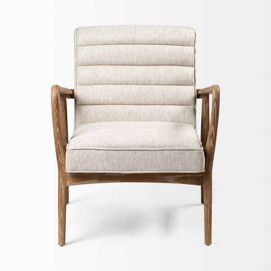 Ajax Upholstered Accent Chair Cream Fabric | Brown Wood