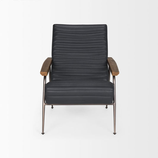 Grosjean Leather Accent Chair Black Leather | Black Metal