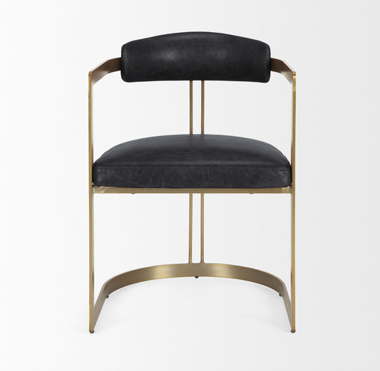 Hollyfield Leather Dining Chair Black Leather | Gold Metal