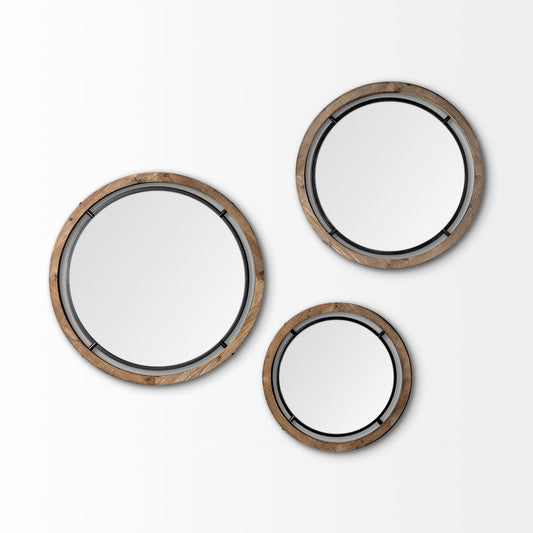 Josi Wall Mirror Brown Wood| Black Metal | 28"