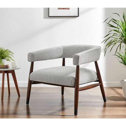 Kopari Upholstered Accent Chair White Boucle | Dark Brown Wood