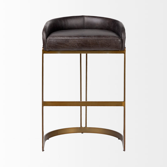Hollyfield Leather Seat Bar Counter Stool Brown Leather | Gold Metal | Counter