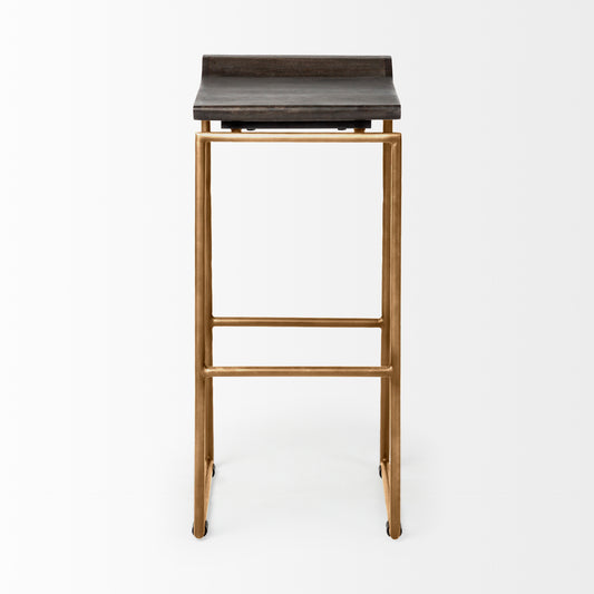 Givens Wood Seat Bar Counter Stool Brown Wood | Gold Metal | Bar