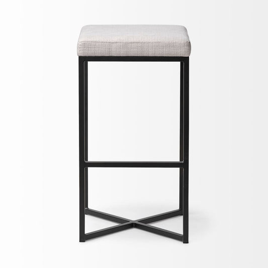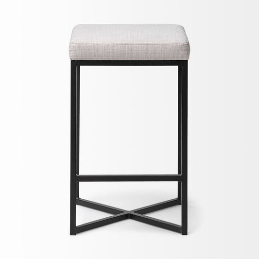 Frodo Upholstered Seat Bar Counter Stool White Fabric | Black Metal | Counter