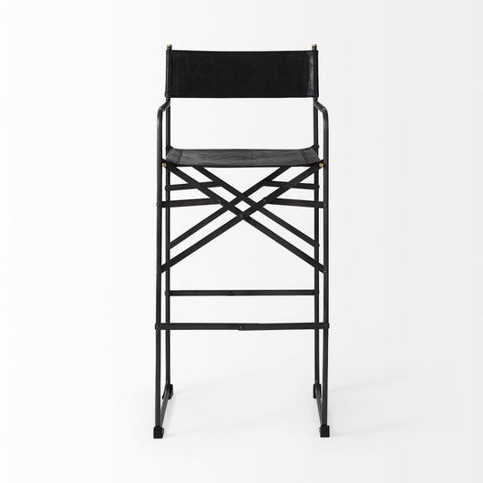 Direttore Bar Counter Stool Black Leather | Black Iron | Bar