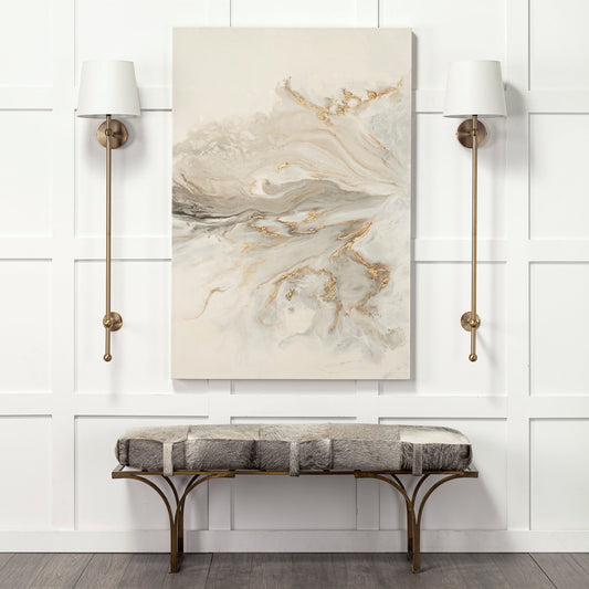 Jessie 55L x 16W White/Gray Hair-On-Hide Seat W/Gold Metal Base Accent Bench