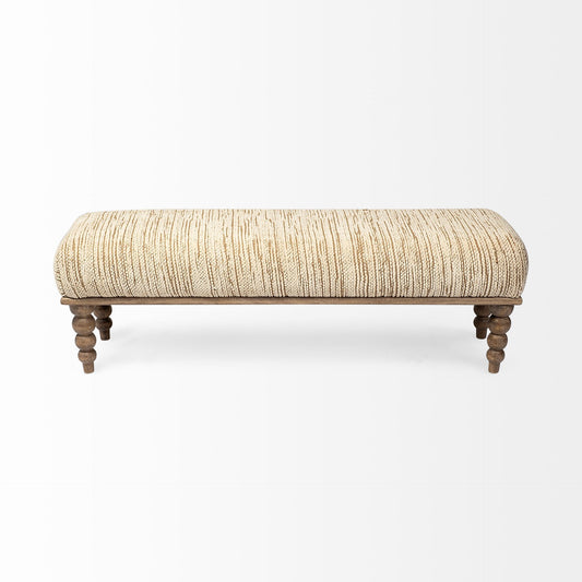 Alder Rectangle Bench Cream Fabric | Brown Wood