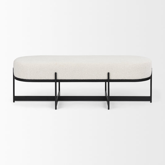 Amelia Bench Cream Bouclé Fabric | | Black Metal