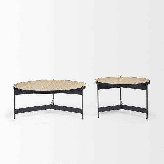 Wade Coffee Table Travertine | Black Metal