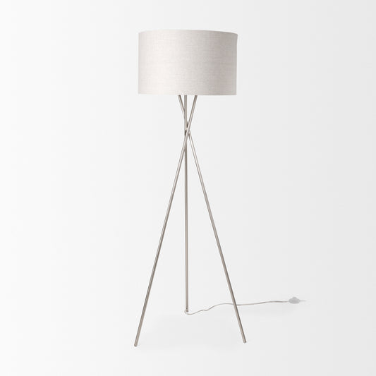 Ambrose Floor Lamp Silver Metal | Beige Shade