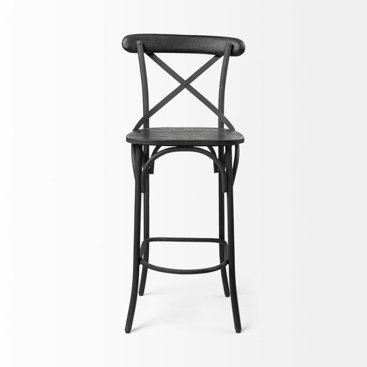 Etienne Wood Seat Bar Counter Stool Black Wood | Black Metal | Bar