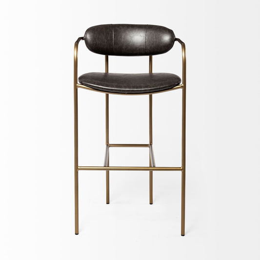 Parker Leather Seat Bar Counter Stool Brown Faux Leather | Gold Metal | Bar