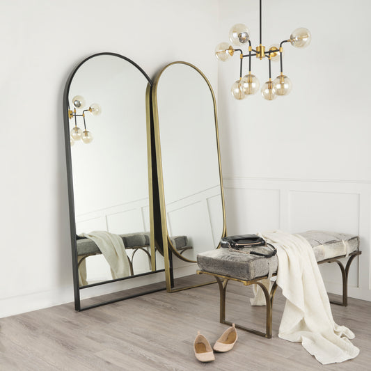 Sadie 36.0L x 2.0W x 76.0H Black Metal Rounded Arch Floor Mirror