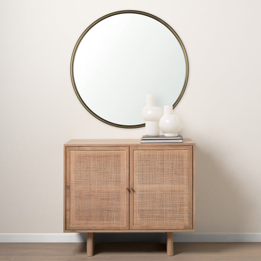 Piper 35.8L x 1.0W x 35.8H Small Gold Metal Round Wall Mirror
