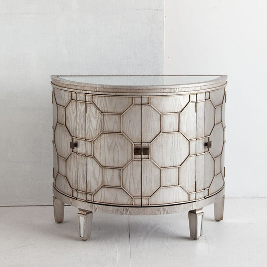 Oppsola 40L x 18W Silver Fir Veneer Mirror Top 4 Door Accent Cabinet