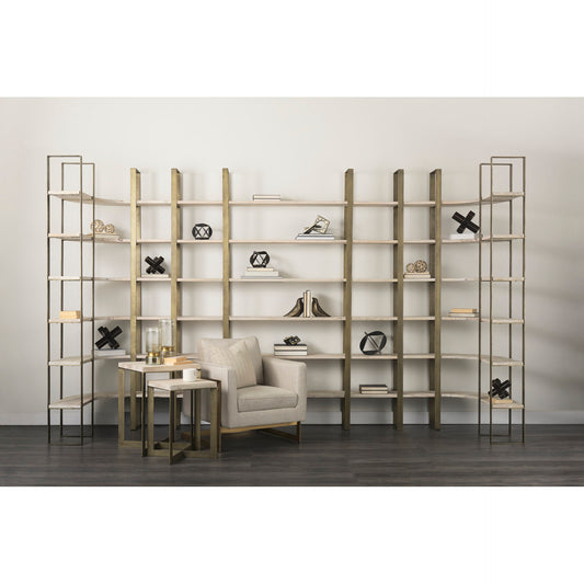 Darius 82L x 16.5W x 90H Medium Brown Wood and Metal Multi-Shelf Shelving Unit