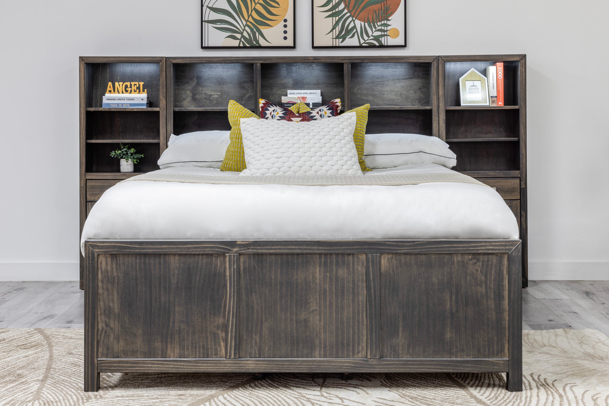 Crafted from solid pine wood and proudly made in Canada, this Laurel Queen bed combines timeless design with reliable construction. The sturdy hardwood frame ensures lasting durability and stability for years of restful sleep. Available in two configurations—with or without integrated storage—this versatile piece adapts to your bedroom layout and storage needs. The natural wood finish showcases the material's authentic grain, adding warmth and character to any décor. An excellent choice for those seeking quality Canadian-made furniture that balances form and function.